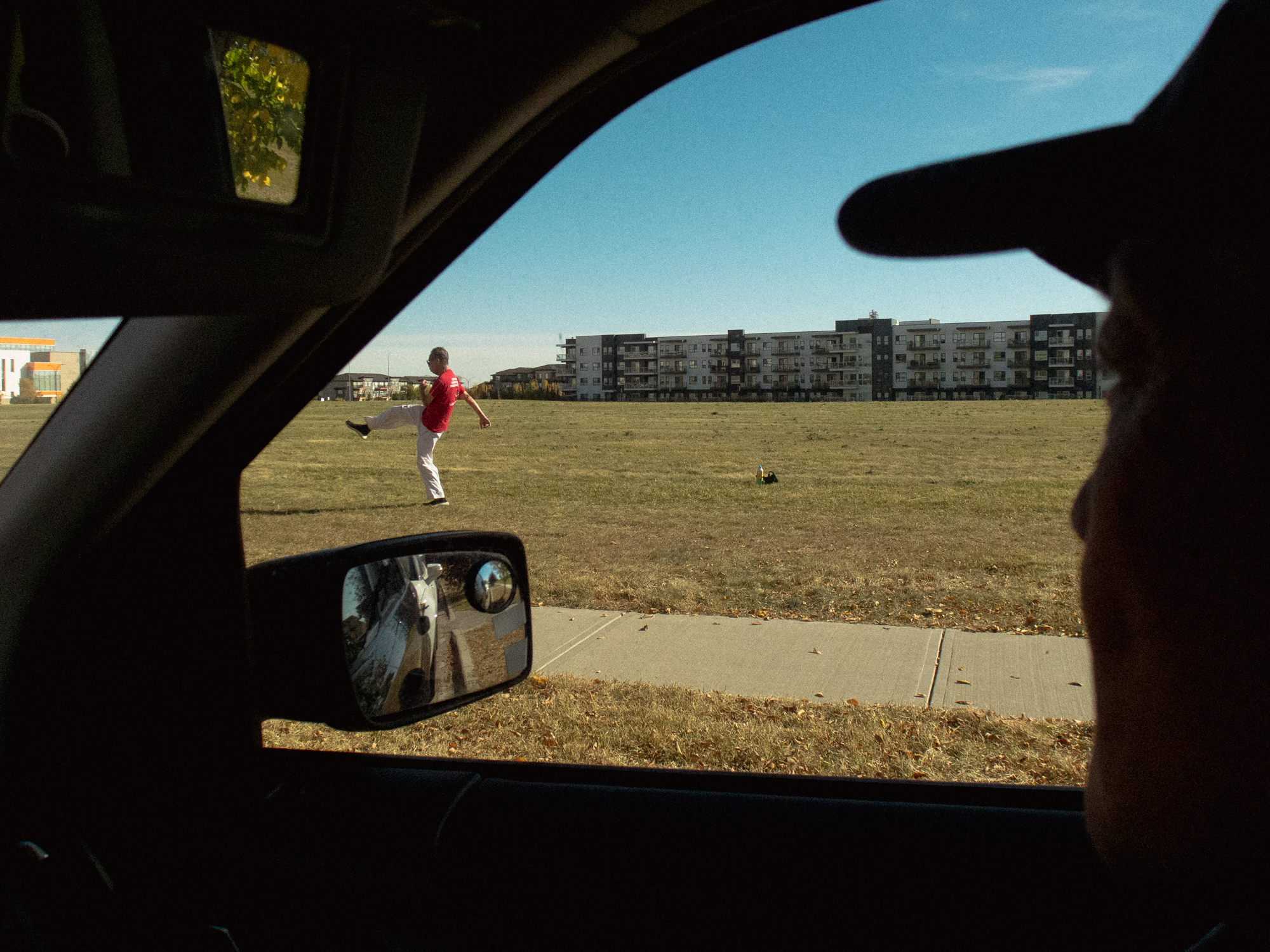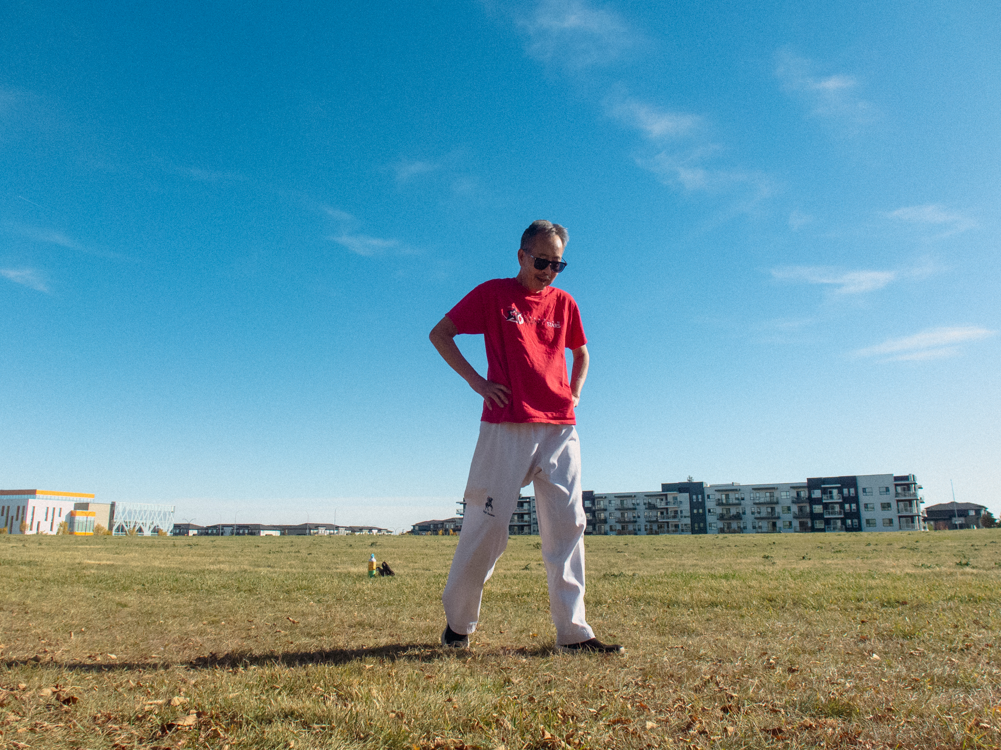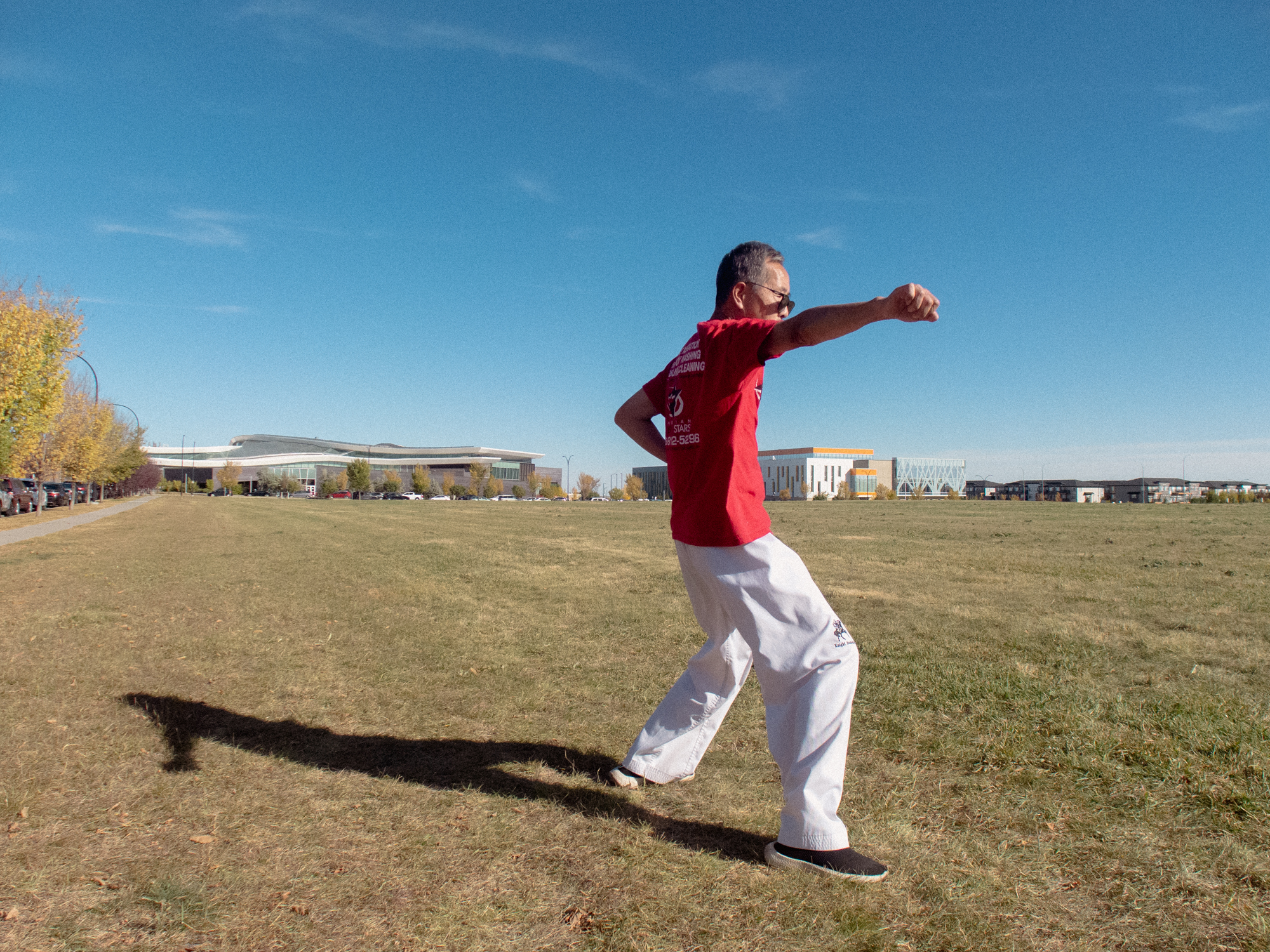 I was out one day taking pictures on my first hour of my walk, when I met this older Chinese man practicing karate in the field.